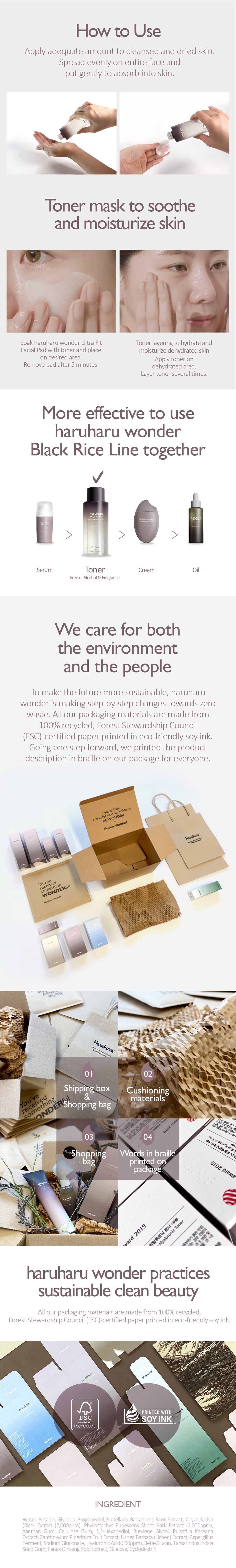 • Hypoallergenic toner even safe for sensitive skin • Fermented 100% Korean-produced Black Rice Extracts restore elasticity to the skin • Gives a boost of hydration and alleviates tightness in the inner layer